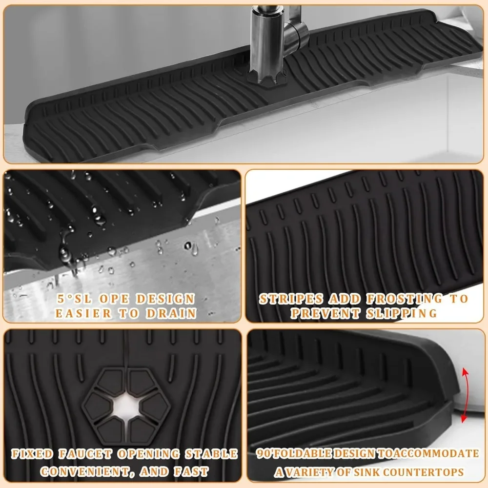24/29.5inch Faucet Drain Pad Kitchen Household Anti-Splash Non-Slip Faucet Pad Dry Foldable Washing Countertop Soap Non-Slip Pad