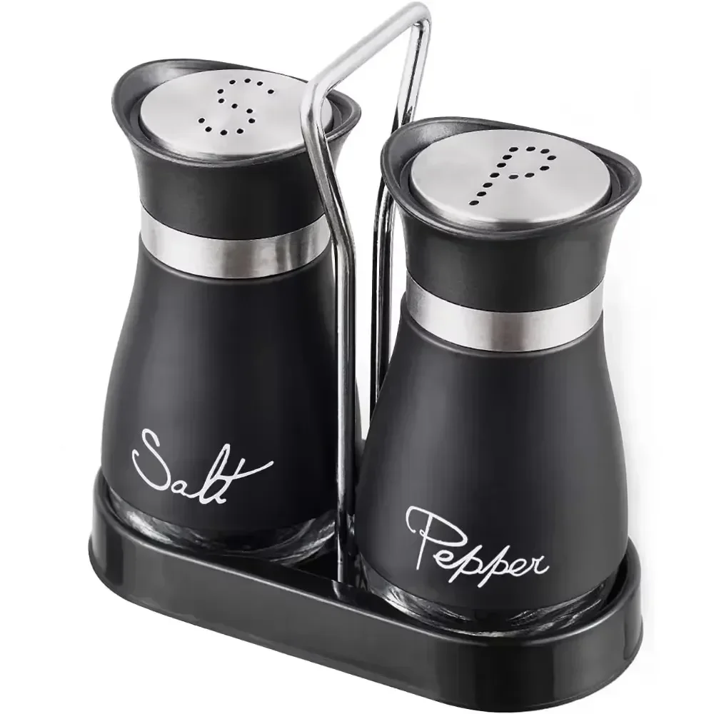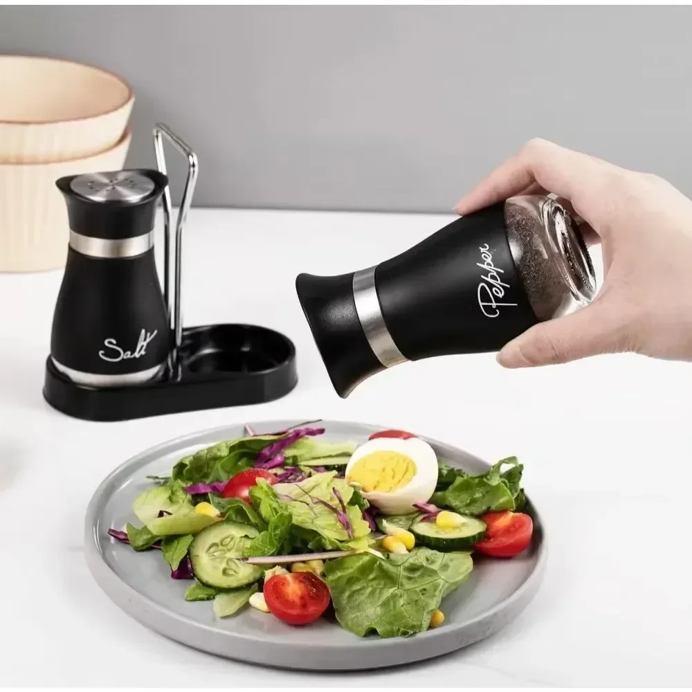2pcs Glass Spice Bottle Adjustable Refillable Salt and Pepper Shakers with Shelf Spice Dispenser Pour Holes Kitchen Gadget