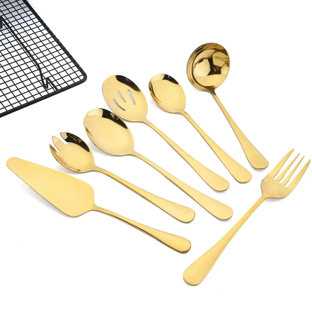 7Pcs Cutlery Set Stainless Steel Dinnerware Set Soup Spoon Colander Service Spoon Salad Fork Cake Spatula Kitchen Home Tableware