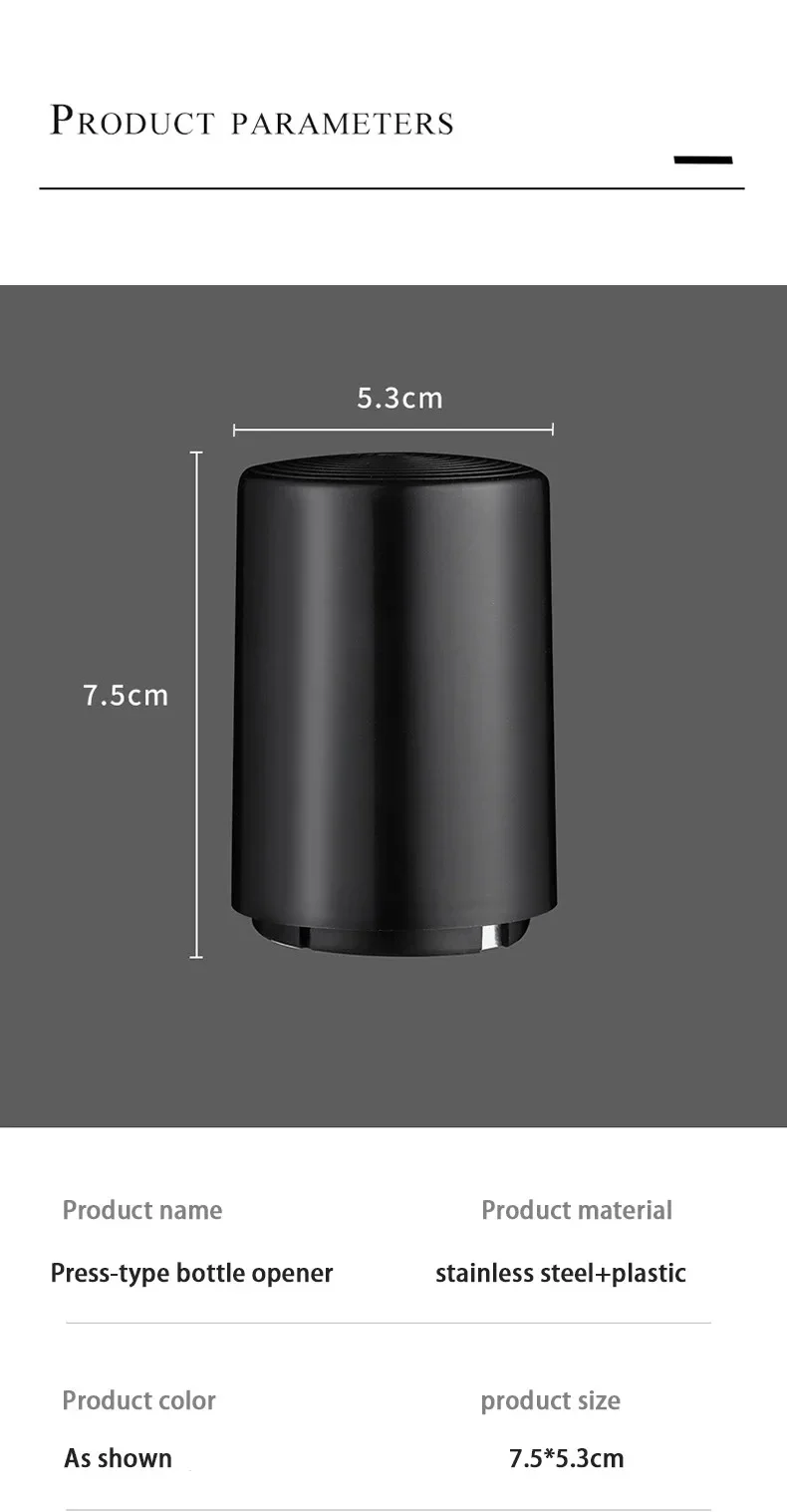 2.Just place this automatic bottle opener on the bottle cap, press it down to the end, and then pop it off. The cap is easily removed from the bottle even with one hand ! Perfect for removing the cap of beer, soda and glass bottle.