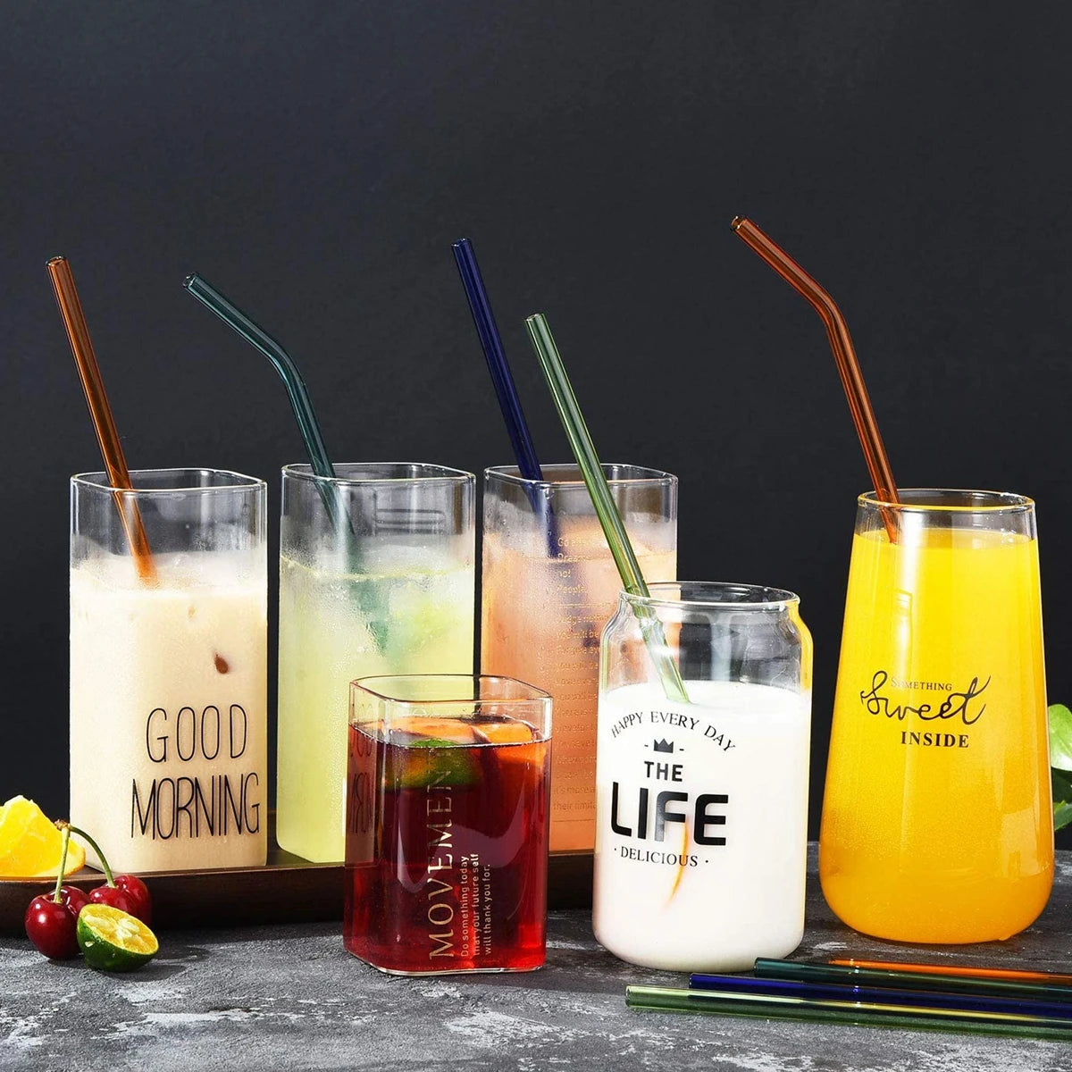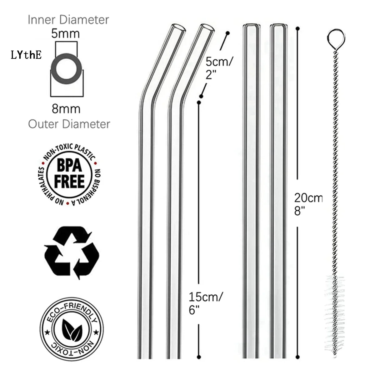 Glass Drinking Straws Kitchen Bar Reusable Drinking Straws Eco-friendly Glass Cocktail Straws for Juice Milk Coffee Bar Drinks
