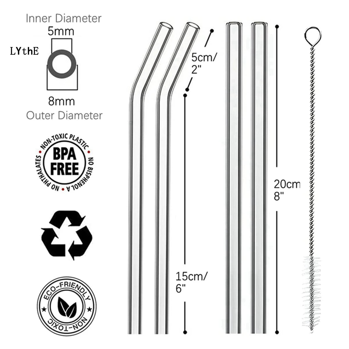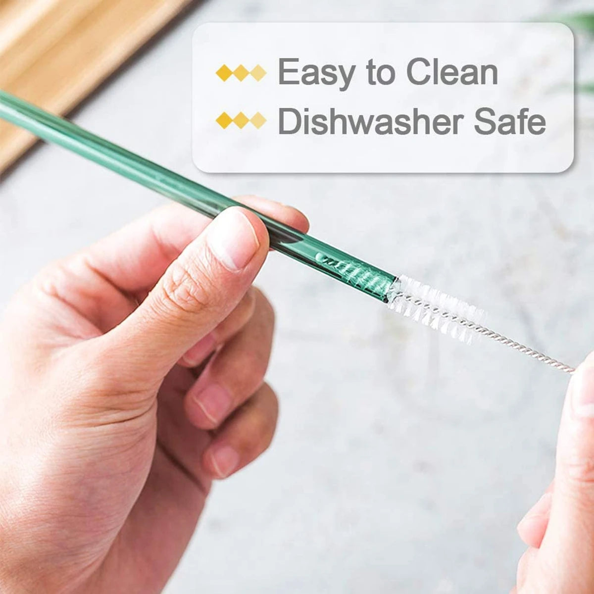 Package include: 8Pcs glass straws + 2pcs cleaning brushes
