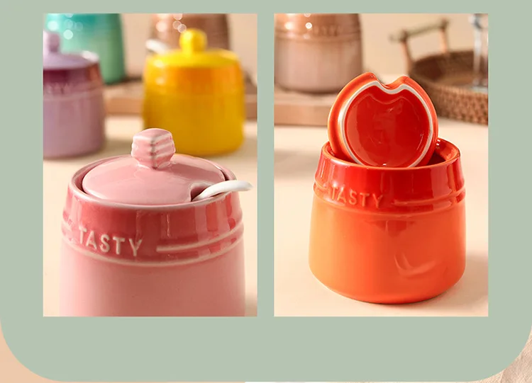 Ice Cream Gradient Rainbow Color Ceramic Seasoning Jar With Lid Sugar Salt Storage Accessories Kitchen Spoon French Style Set