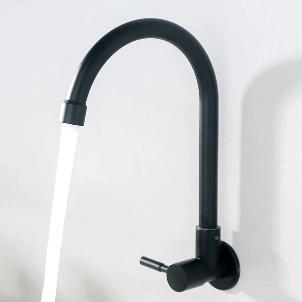 Kitchen Faucet Plastic Steel Sink Faucet Black Single Cold Water Tap Wall Mounted G1/2Inch Kitchen Sink Faucet