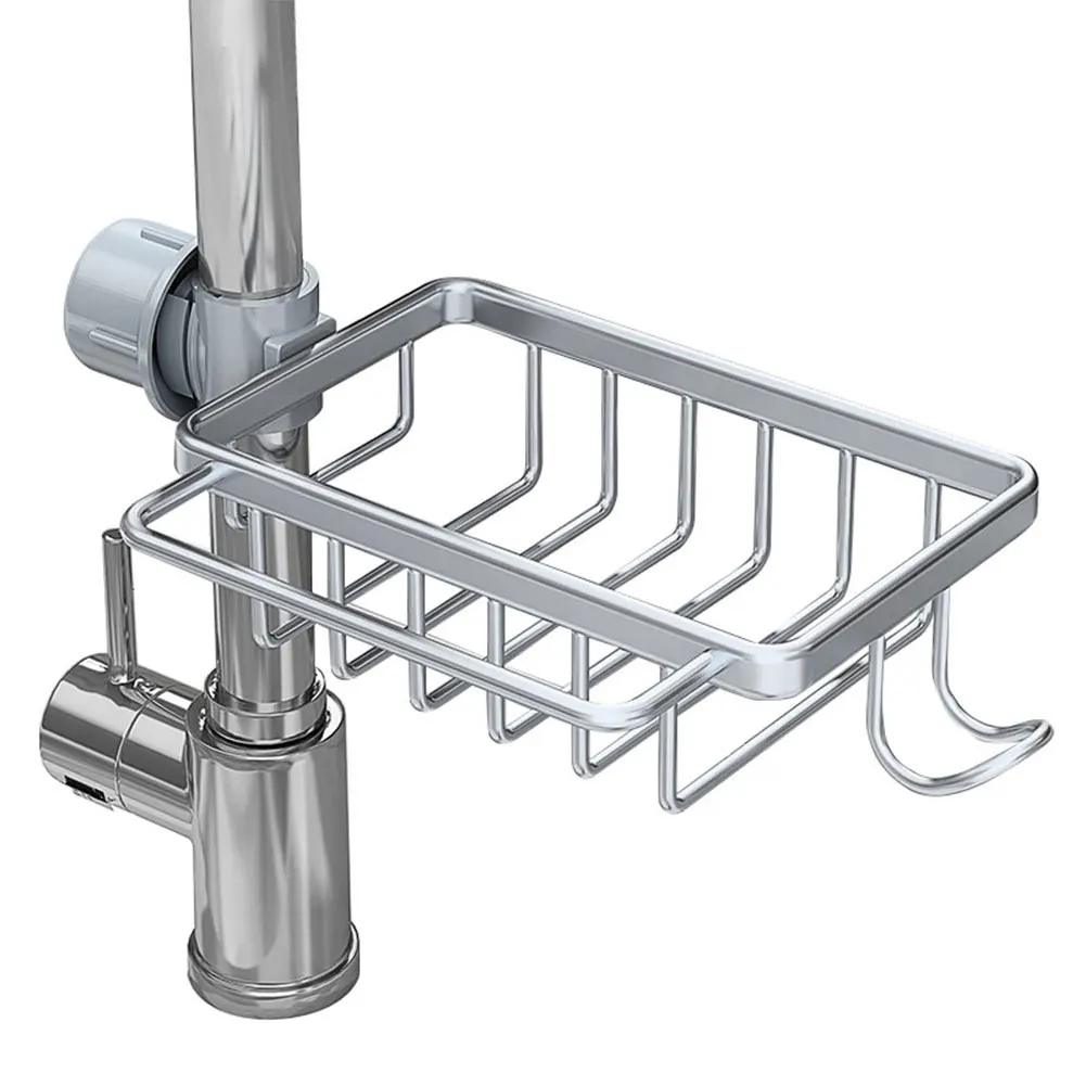 Dish Sponge Holder Detachable Over Faucet Sink Caddy Organizer Aluminum Multifunction Organizer Rack for Bathroom Scrubbers Soap