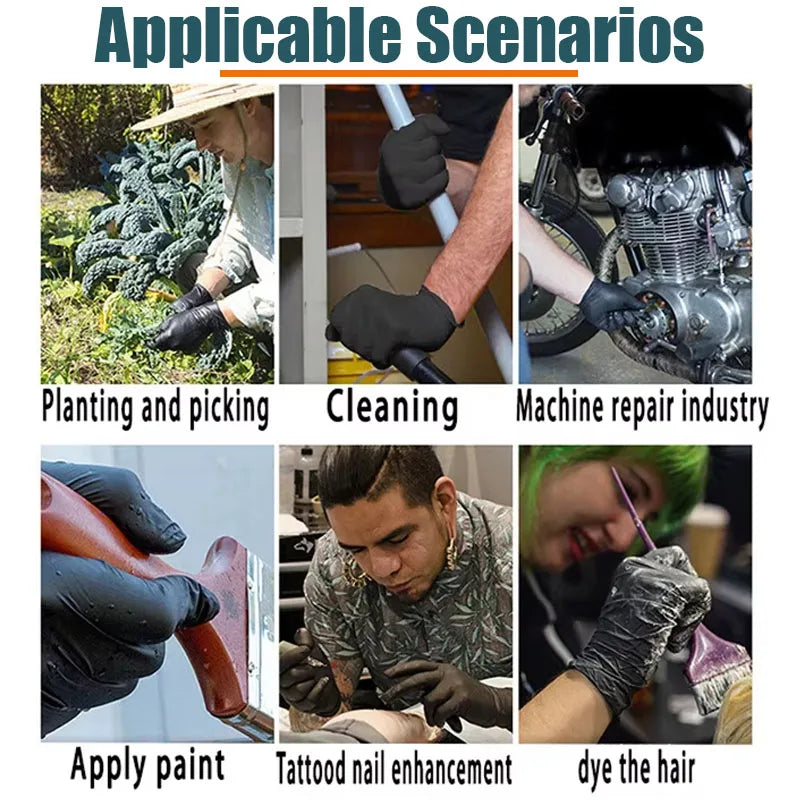 New 100PCS Black Nitrogen Glove Household Disposable Gloves Kitchen Cooking Food Cleaning Car Laundry Cleaning Waterproof Gloves