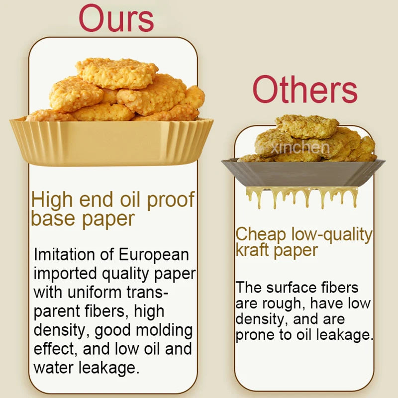 【Healthy & Reliable Material】Crafted from food-grade natural wood pulp, these airfryer liners is green and sustainable.And it can withstand high temperatures without altering food taste, ensuring healthier cooking results.