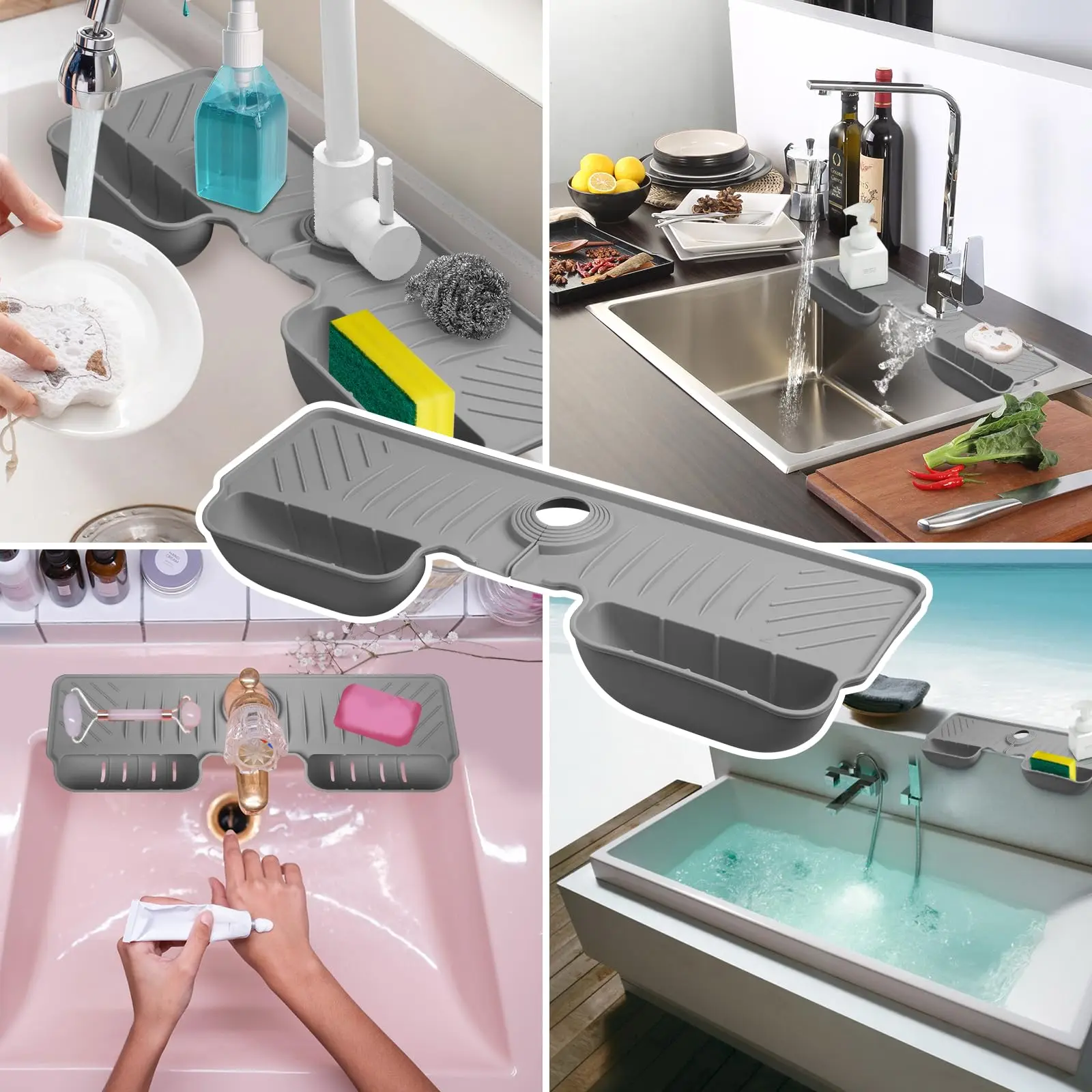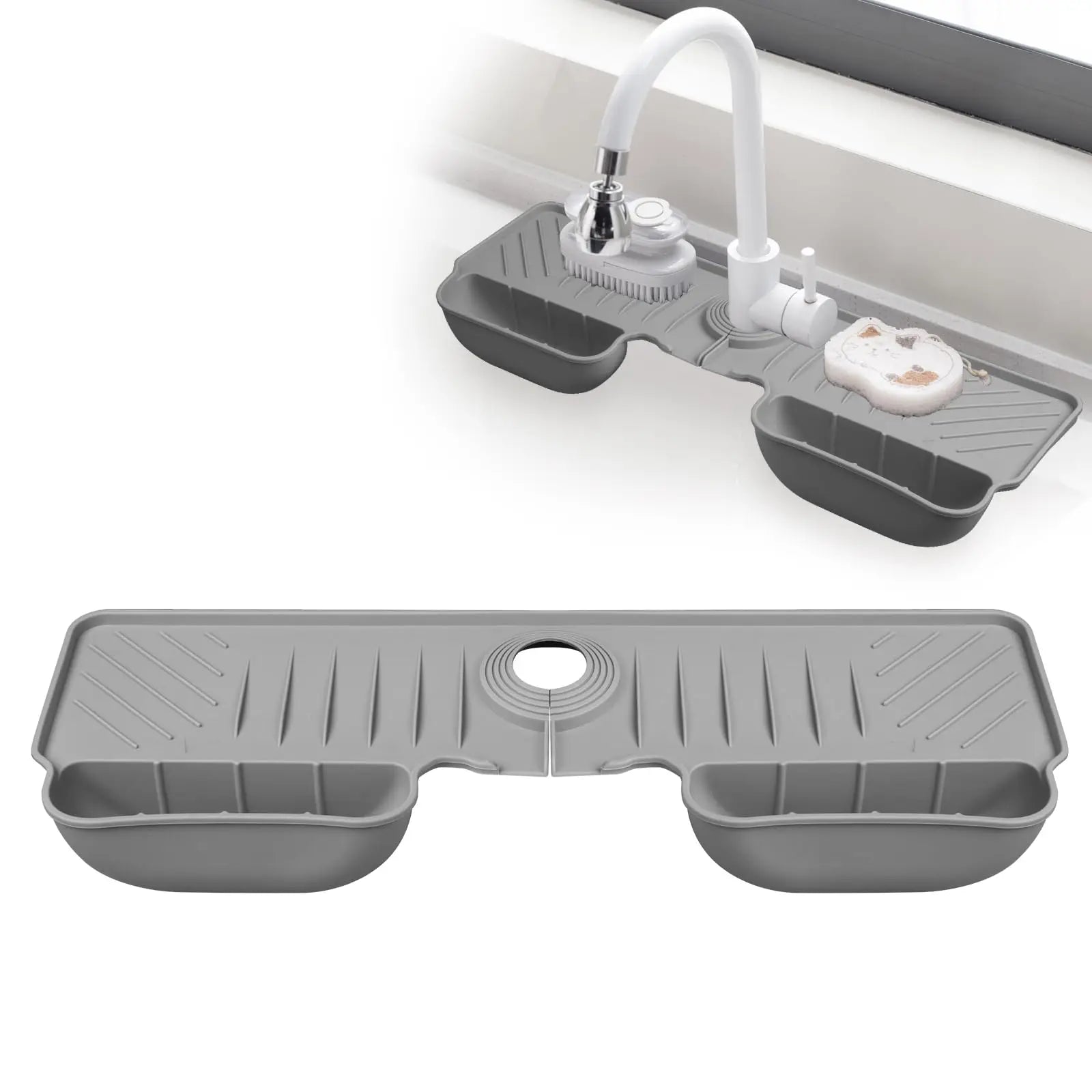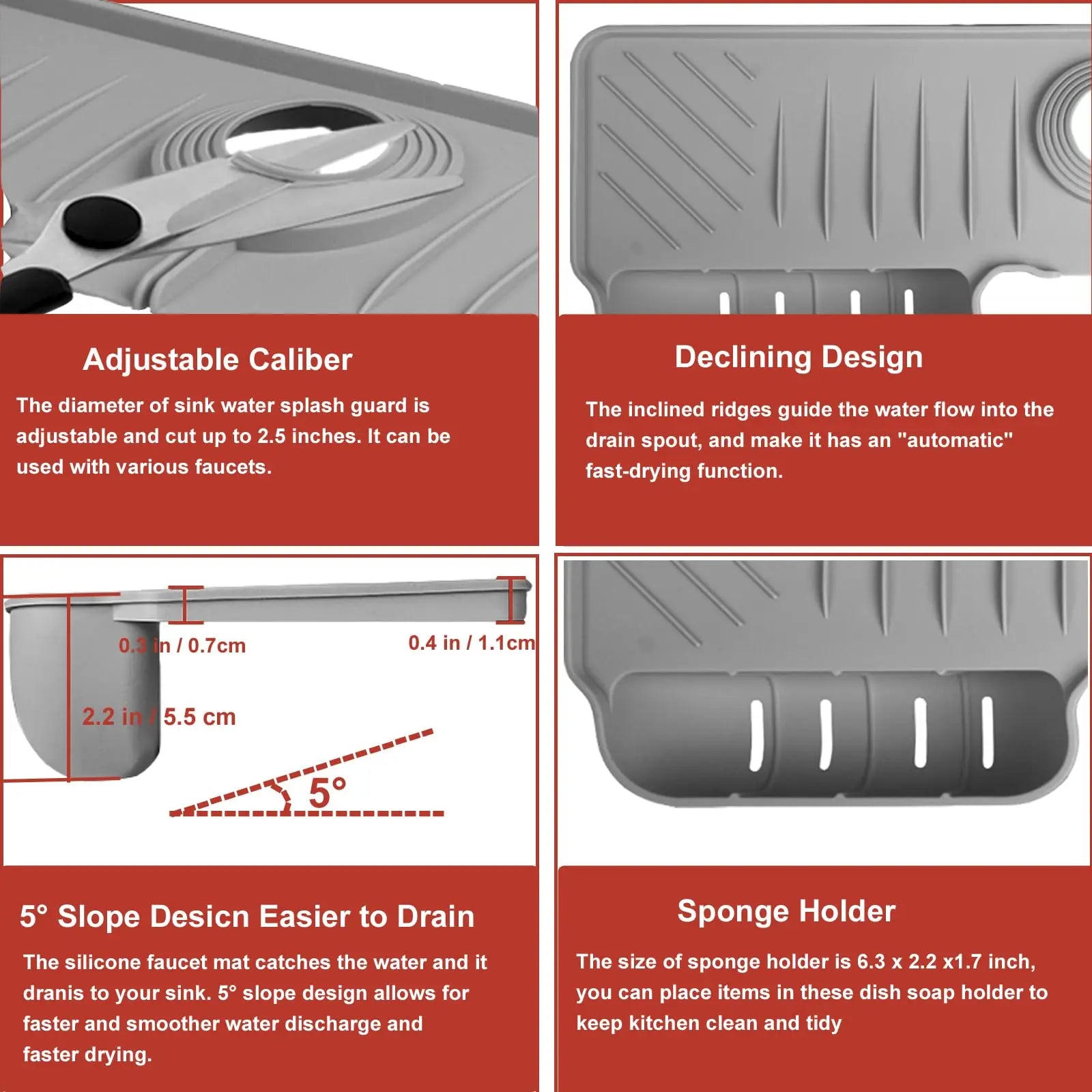 Silicone Faucet Splash Guard Water Catcher Mat Sink Mat Tray Drying Mat Dish Sponge Holder Kitchen Sink Accessory Organizer