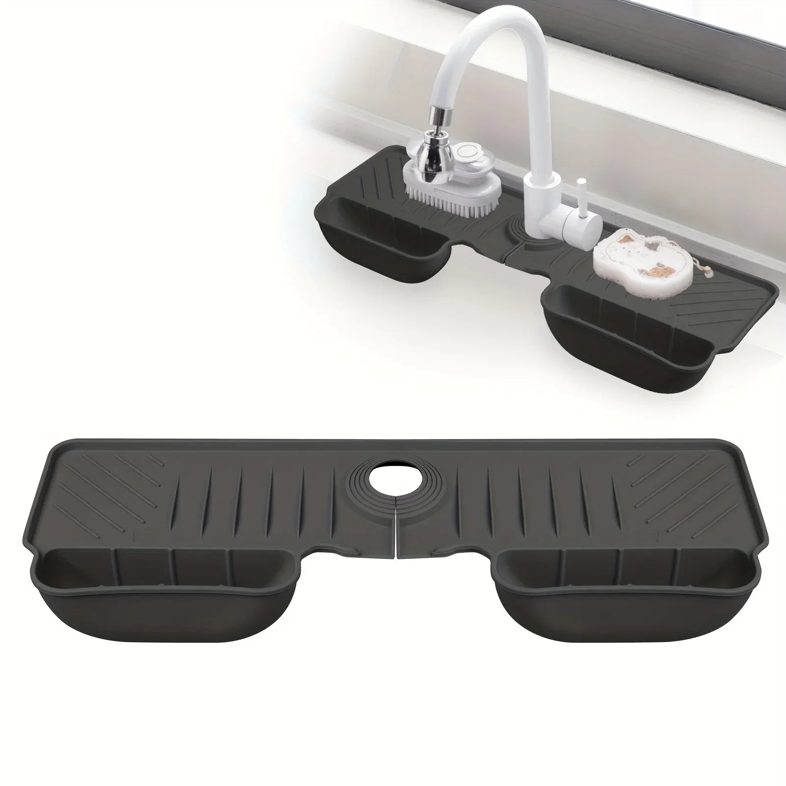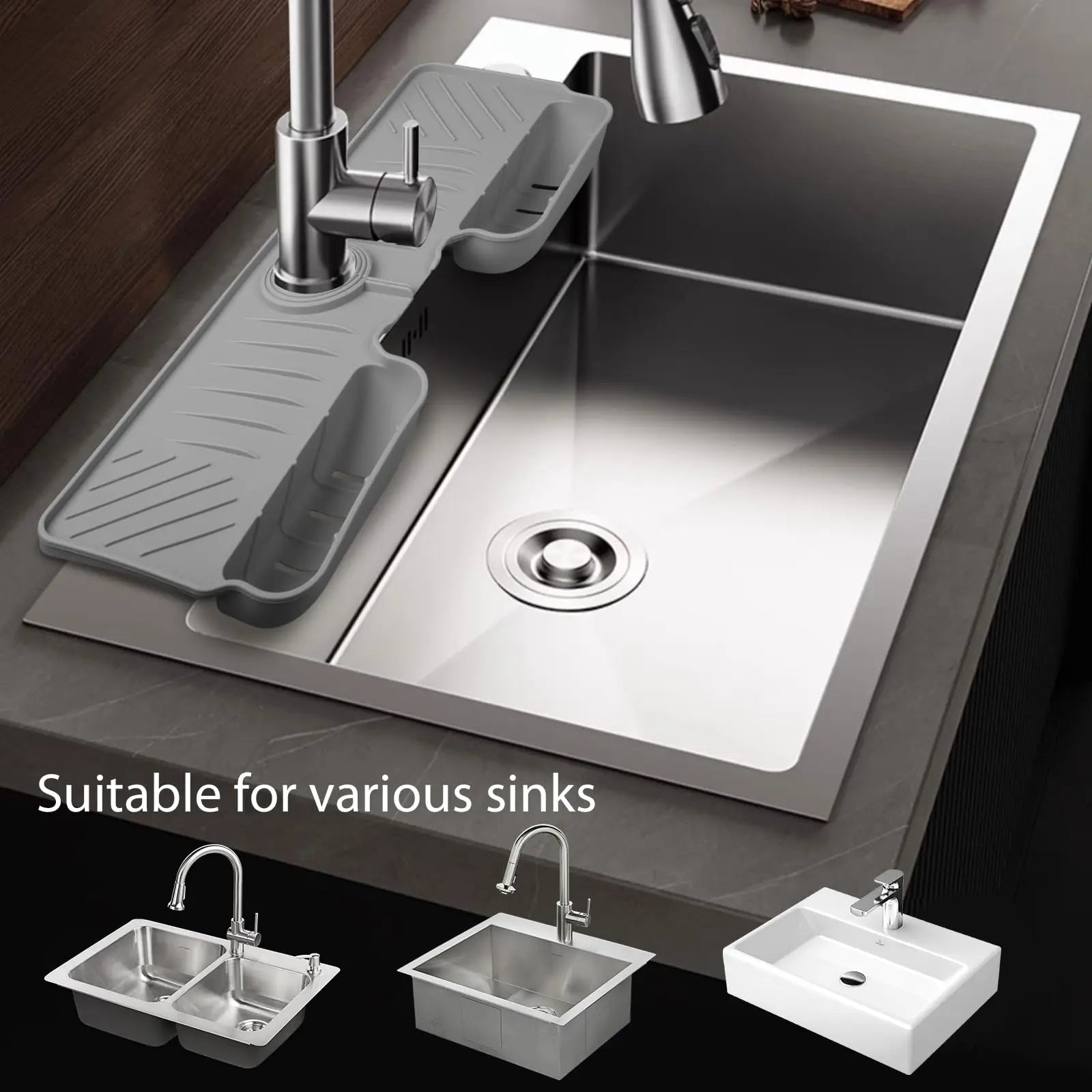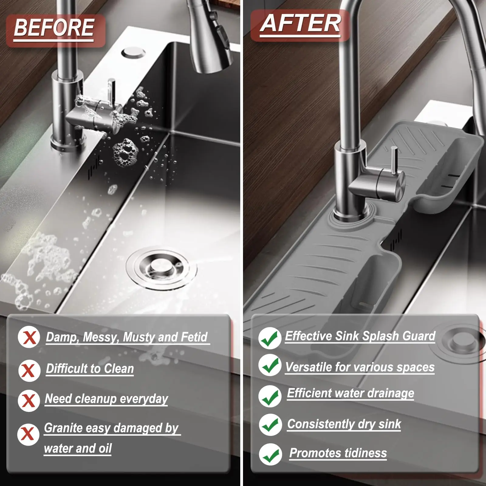 Silicone Faucet Splash Guard Water Catcher Mat Sink Mat Tray Drying Mat Dish Sponge Holder Kitchen Sink Accessory Organizer