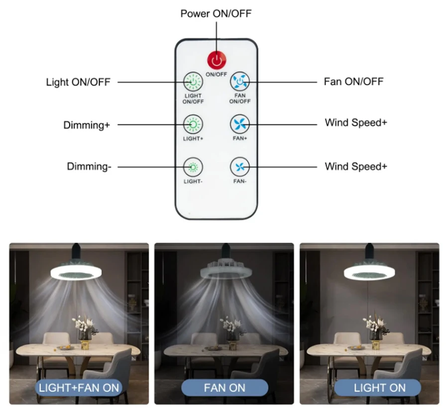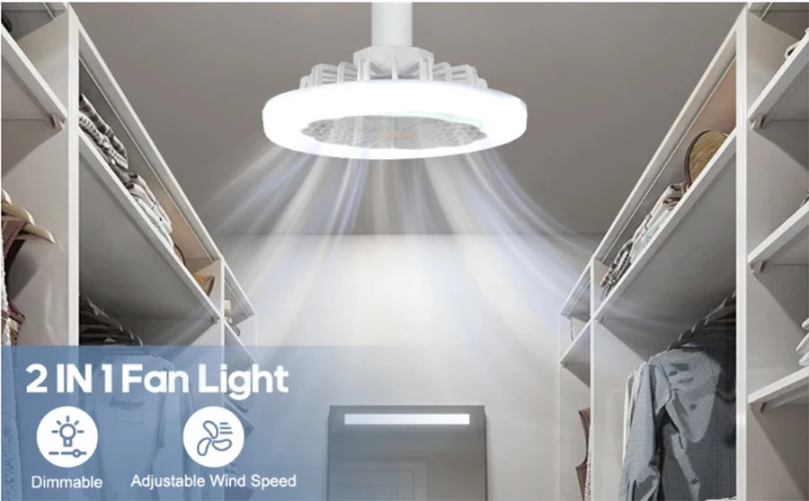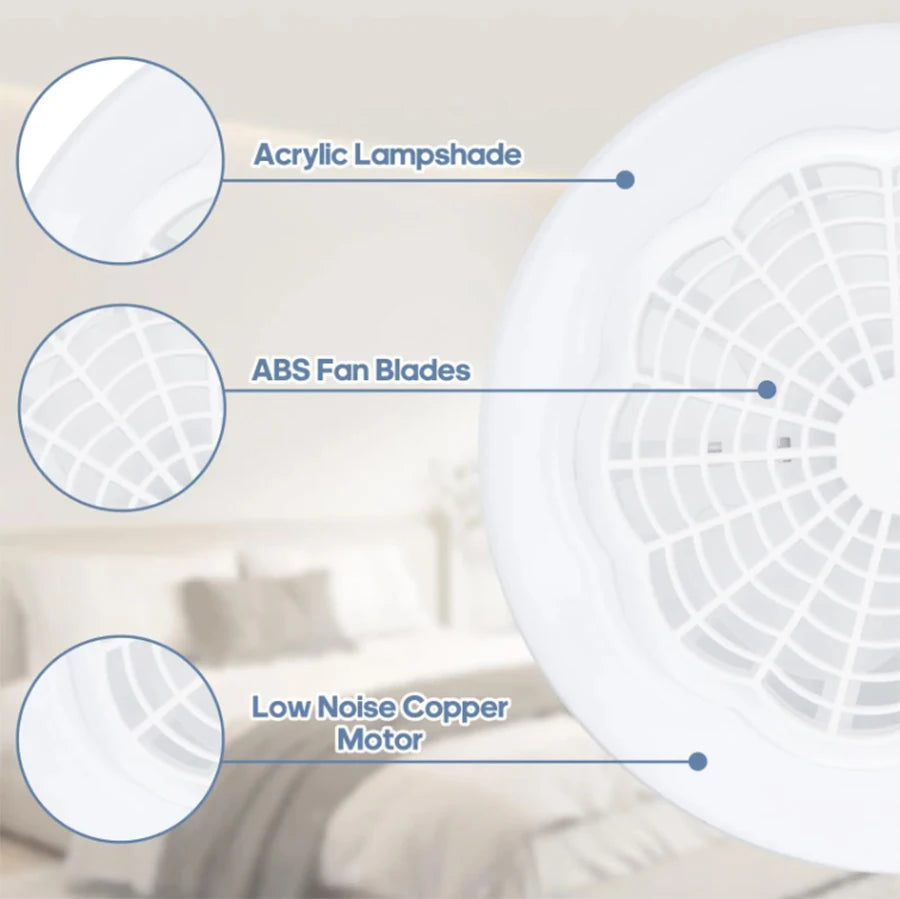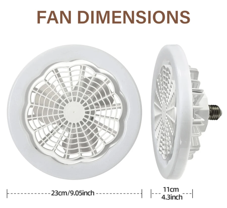 Smart remote control 3-in-1 ceiling fan light E27 LED light 23cm universal bedroom and kitchen lamp ceiling fan