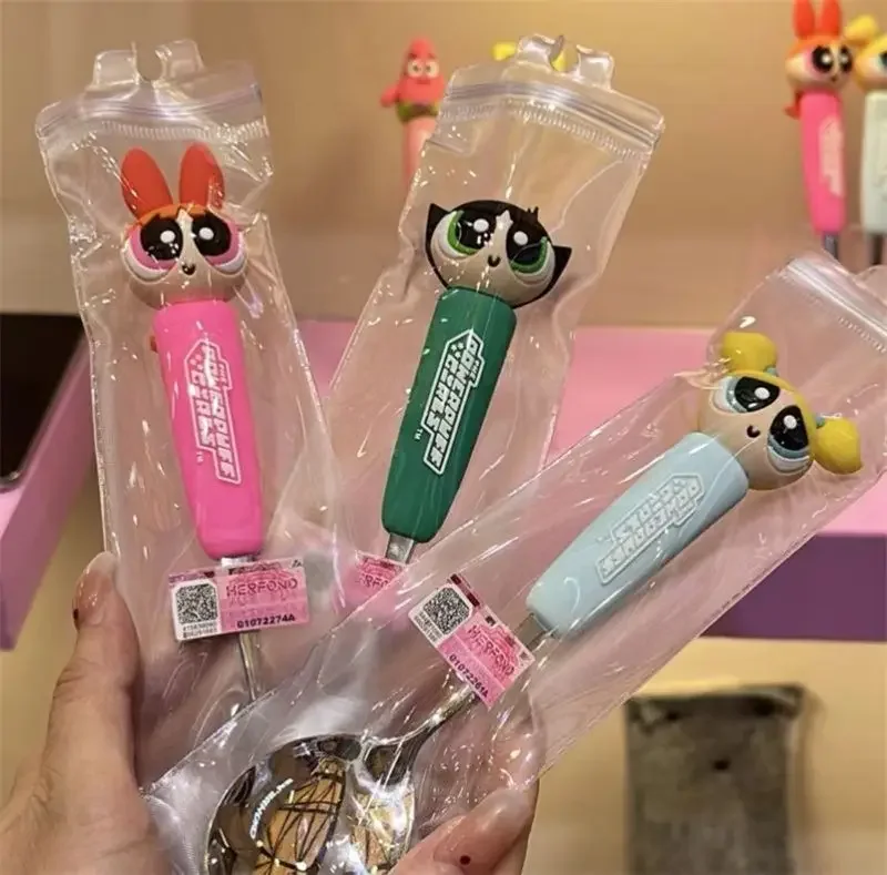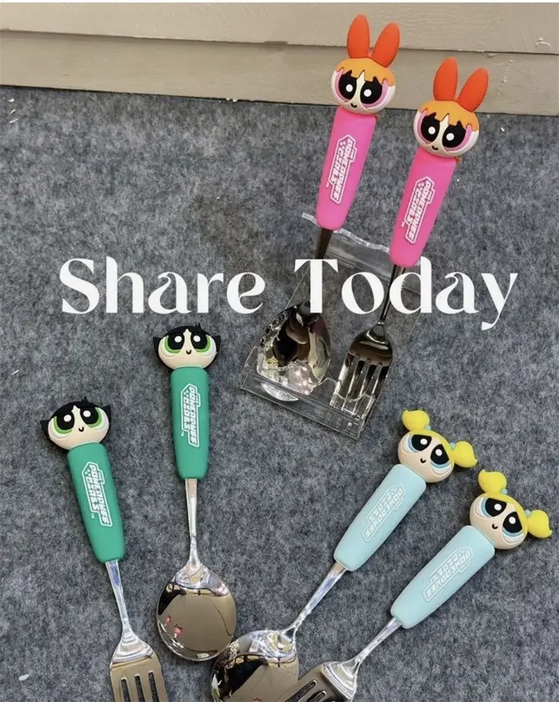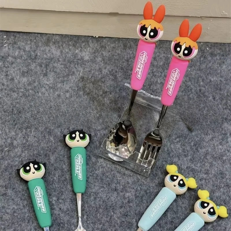 The Powerpuff Girls Blossom Bubbles Anime Peripheral Creative Cartoon Home Kitchen Student Portable Spoon and Fork Tableware