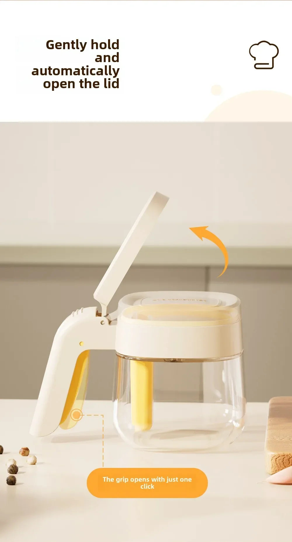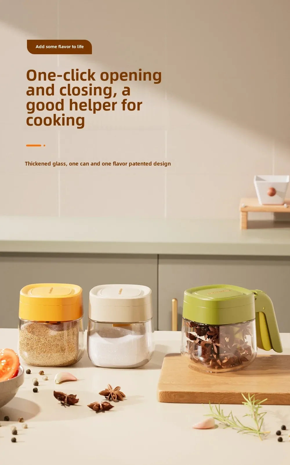 Transparent Glass Seasoning Jar Household Flip Cover with Spoon Chicken Essence Salt, Kitchen Monosodium Glutamate Seasoning Box